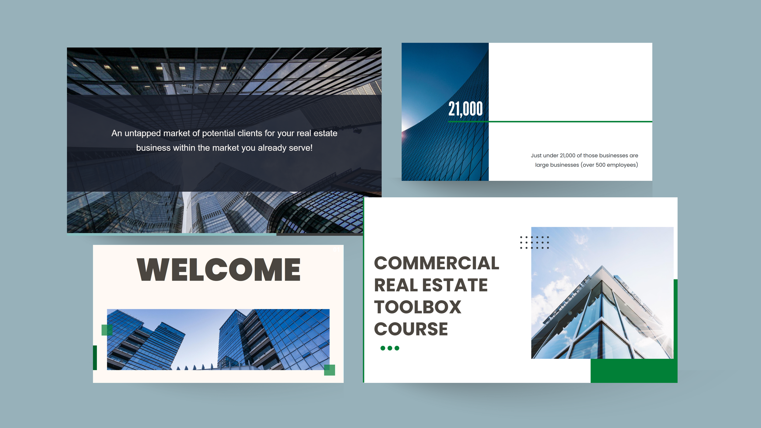 A commercial real estate presentation toolbox designed to support course content by visually reinforcing key data, examples, and takeaways.